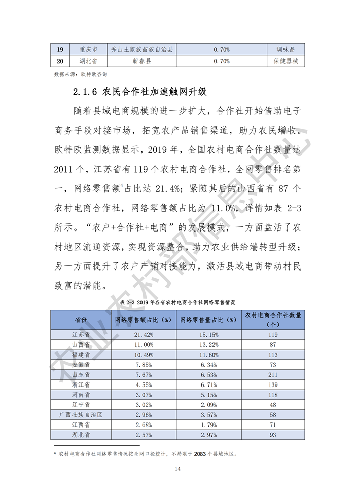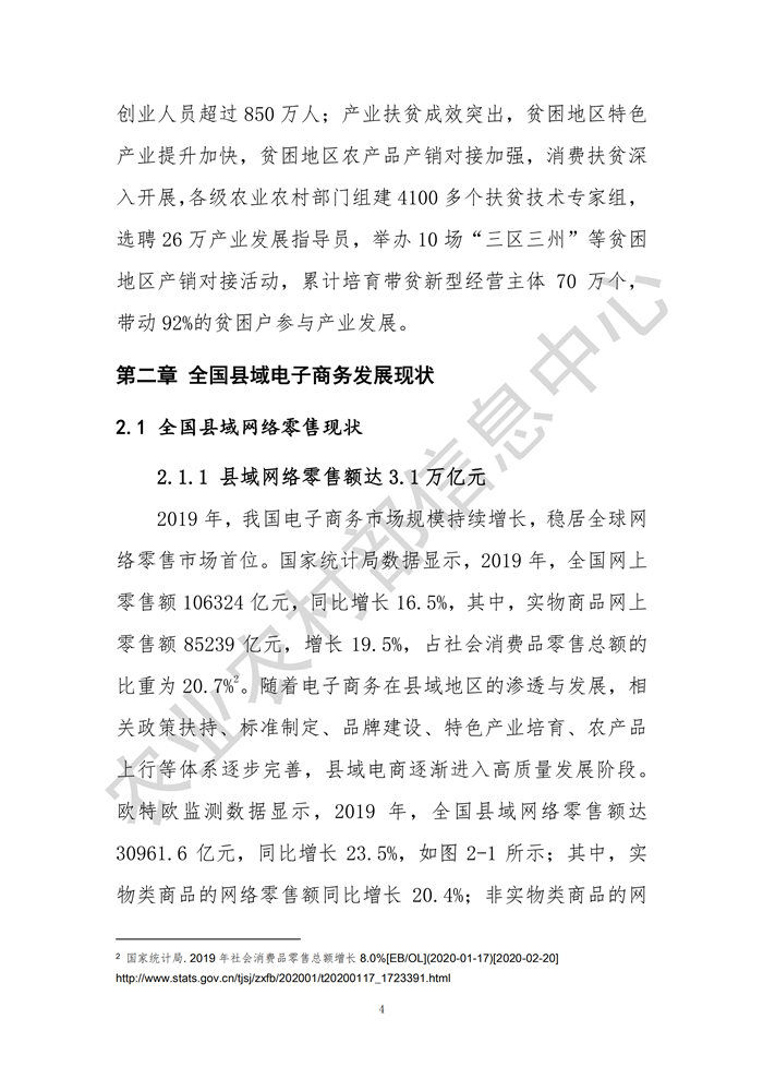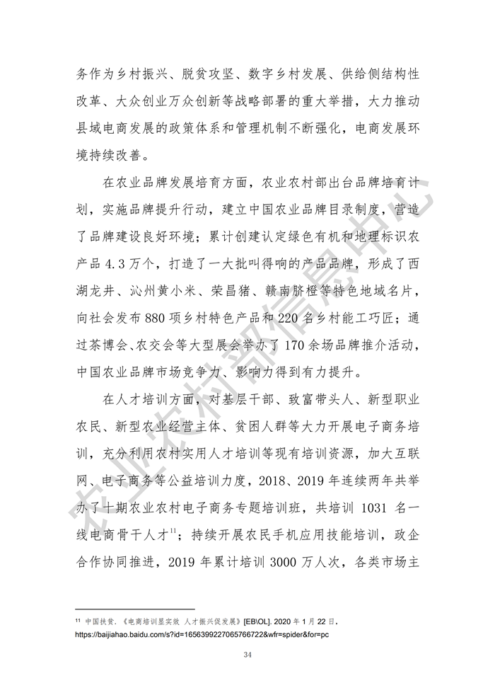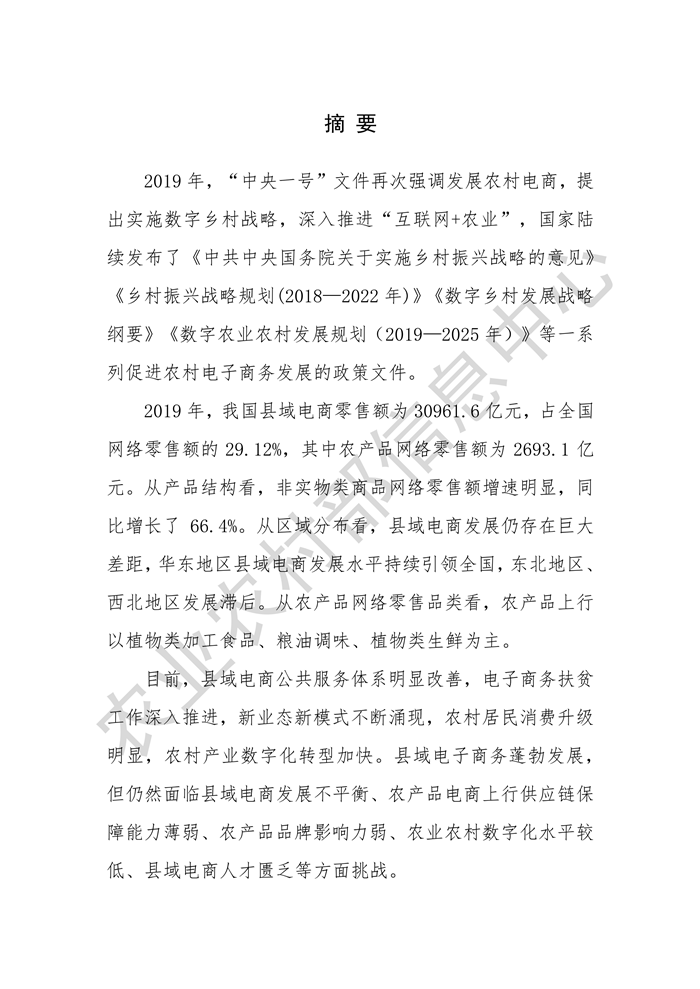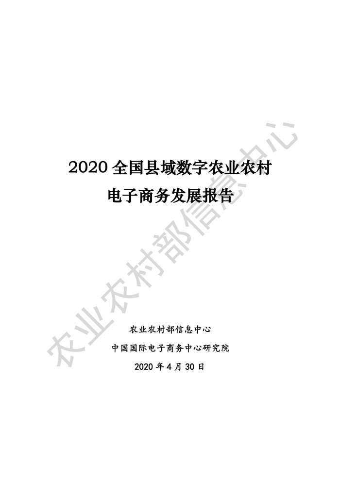 《2020全國縣域數(shù)字農(nóng)業(yè)農(nóng)村電子商務(wù)發(fā)展報告》發(fā)布(附全文鏈接)