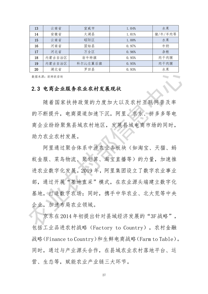 點(diǎn)擊查看完整報告:2020全國縣域數(shù)字農(nóng)業(yè)農(nóng)村電子商務(wù)發(fā)展報告.pdf